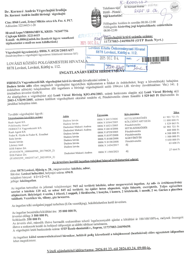 Lovászi Polgármesteri Hivatal épületének energetikai korszerűsítése